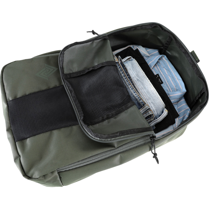 Väčší mestský batoh na každodenné nosenie do práce, do školy, alebo na šport. Je doplnený o vyberateľný organizér na oblečení, takže dobre zvládne aj víkendový výlet. Vrecko na počítač a množstvo menších vreciek na nabíjačky, myš, káble a ďalšie nevyhnutnosti. Vrecko na okuliare. Skryté vrecko na pas, peňaženku a ďalšie cennosti. Integrované vodeodolné vrecko na toaletné potreby s vodeodolným zipsom. Pohodlný chrbtový panel z mäkkej EVA. Veľké ucho na boku a možnosť pripnutia popruhov tak, aby neprekážali. Objem 32 l, rozmery 54 x 31 x 21 cm. Hmotnosť cca 890 g.
