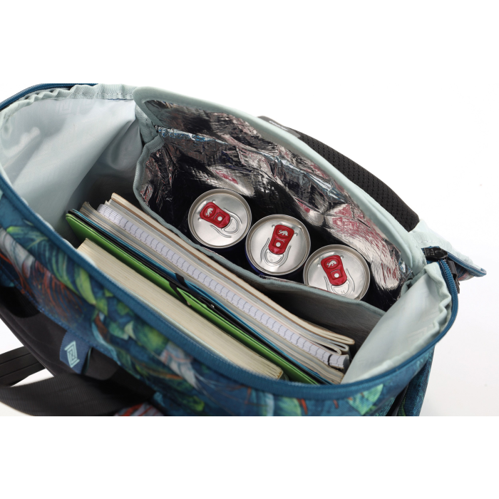 Stredne veľký mestský batoh na každodenné nosenie ako do kancelárie alebo školy, tak na šport. Praktické tvarovanie chrbta zaisťuje skvelú cirkuláciu vzduchu po celej ploche. Hlavné vrecko s vrchným prístupom ponúka rýchly prístup ku všetkým tvojim veciam. Veľké sieťované vrecko zvnútra veka, polstrovaná prepážka až na 15" notebook a druhé na tablet. Vnútorné izolované vrecko, ktoré udrží chladné všetko čo chceš po dlhšiu dobu. Vonkajšie veľké zipsové vrecko na všetky nevyhnutnosti, dve bočné vrecká na fľašu, jedno na zips, druhé roztvárateľné. kovovou prackou pre pripnutie skateboardu, alebo čohokoľvek, čo už nenapcháš dovnútra. Opasok na hrudi s prackou pre čo najlepšie nastavenie cez hrudník.