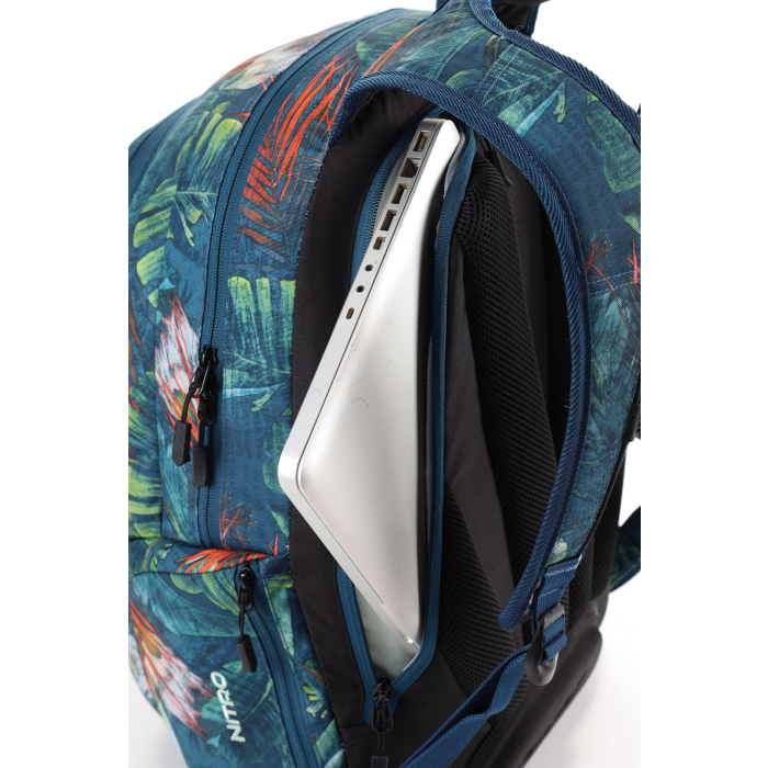 Objem 35 l. Fleecom vystlané vrecko na okuliare a podobne chúlostivé veci, vypolstrované vrecko na 17" notebook - skryté pod "chrbtom" batohu a na samostatný, nenápadný zips. Dve hlavné priestranné oddelenia, priestranný organizér, vnútorné vrecko na suchý zips, vhodné pre nabíjačky, káble. na fľašu, bočné polstrované vrecko na zips. Rozmery približne 51 x 37 x 23 cm.