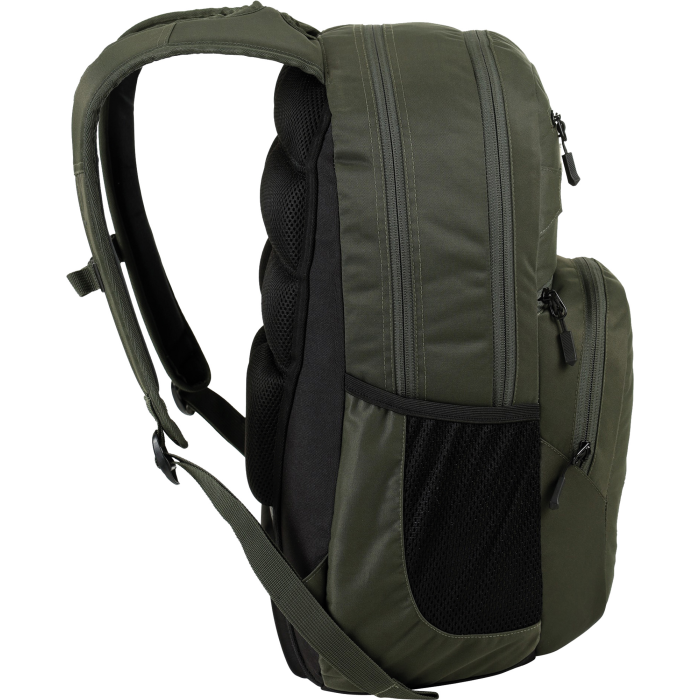 Fleecom vystlané vrecko na okuliare a podobne chúlostivé veci, dve hlavné priestranné oddelenia, vrecko na tablet, vypolstrované vrecko na 17 "notebook, popruh na nesenie skateboardu, postranné vrecko na zips, postranné sieťovinové vrecko na fľašu. Objem 37 cm 3 x 8 cm 3 x 2 cm.