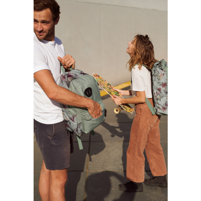 Batoh s pohodlnými polstrovanými popruhmi, predným vreckom na zips, polstrovaným vreckom na 15" notebook a doplnky z vegánskej kože. Objem 20 l, rozmery 40 x 30 x 15 cm. Materiál 600D polyester, hmotnosť 420 g.