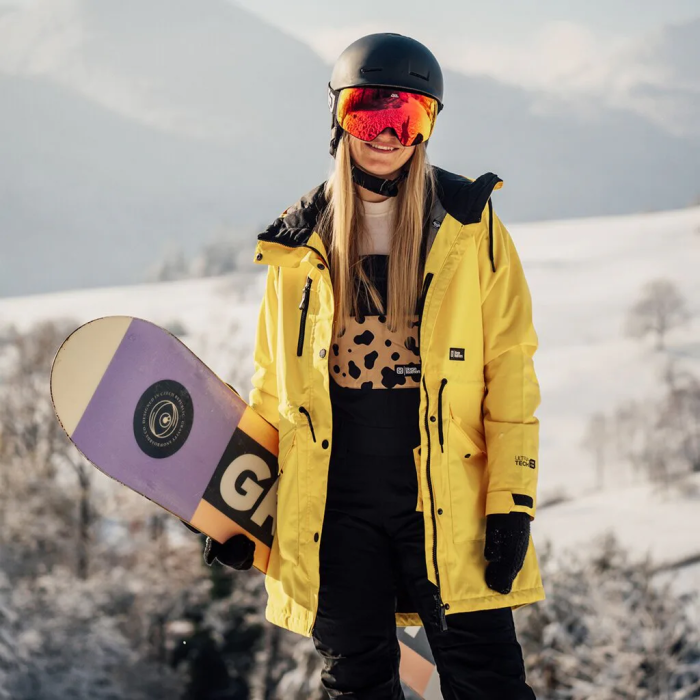 Dievčatá majú rady oblečenie, ktoré vybočuje z radu a je niečím výnimočné. Medzi také patrí aj naša all-mountain bunda Clarisa. Túto bundu sme predĺžili, dali jej streetový look a vybavili laminovanou membránou, stredným PET zateplením, bočnými objemnými vreckami a taktiež dizajnovým sťahovaním pása. Na kopci tak budeš v teple, v suchu a vďaka fresh farbám vyložene zažiariš. Vodeodolnosť a priedušnosť: 4/5 Odolná v silnejšom snežení a vetre Zateplenie: 3/5 Vhodná do nižších teplôt Náročnosť terénu: 4/5 Na jazdenie nielen v rezorte a snowparku VODEODOLNÁ BUNDA S LAMINOVANOU MEMBRÁNOU Vodeodolnosť: 15. Strih: Tailored long BUNDA S AKTÍVNYM ZATEPLENÍM Typ zateplenia: PET Gramáž: 60 g telo, 60 g rukávy Materiál: 100% polyester Podšívka: Extra priedušný 100% polyester, 100% nylonový taft, umelý baránok