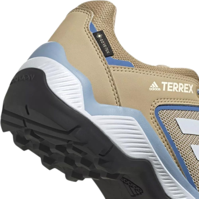 Dámske topánky Adidas Terrex Eastrail Gtx sú určené do ťažšieho terénu, na turistiku. Medzipodrážka z EVA peny sa postará o pohodlie a podrážka Traxion podporuje trakciu a tlmí nárazy. Vložka na špičke a päte spevní a ochráni nohu pred odrením.