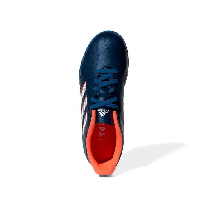Detské kopačky Adidas Copa Sense.4 Tf sú určené na umelú trávu vďaka ich kvalitnej a mäkkej podrážke. Zvršok zo syntetického materiálu zabezpečí odvetrávanie a minimalizuje potenie. Sú prispôsobené na šport ako futbal na základe ich povrchu, ktorý pomáha lepšie precítiť dotyk na loptu.