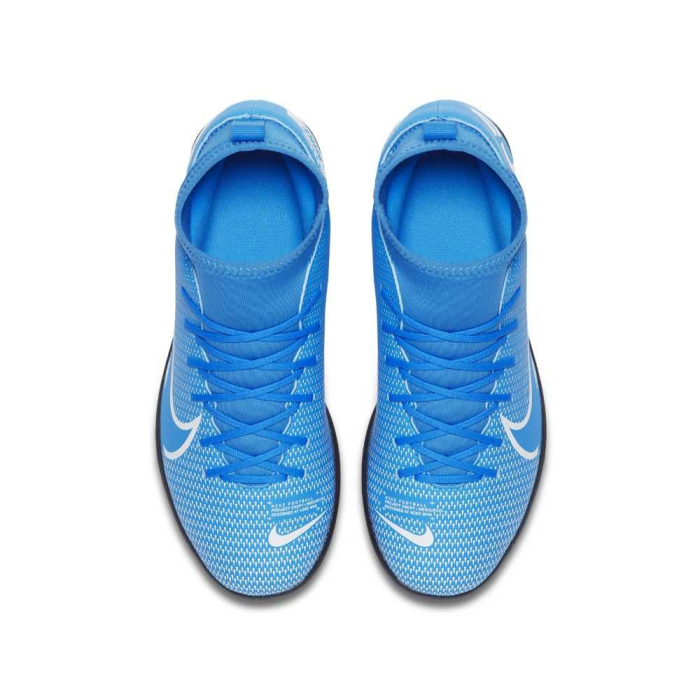 Detské kopačky Nike Superfly 7 Club Tf sú určené na futbal na umelej tráve vďaka ich podrážke. Vzorovaný zvršok majú z mäkkého syntetického materiálu, ktorý zabezpečuje odvetrávanie. Fixáciu chodidla zabezpečí vyvýšená časť, tzv. ponožka, ktorá zároveň chráni členok pred odrením.