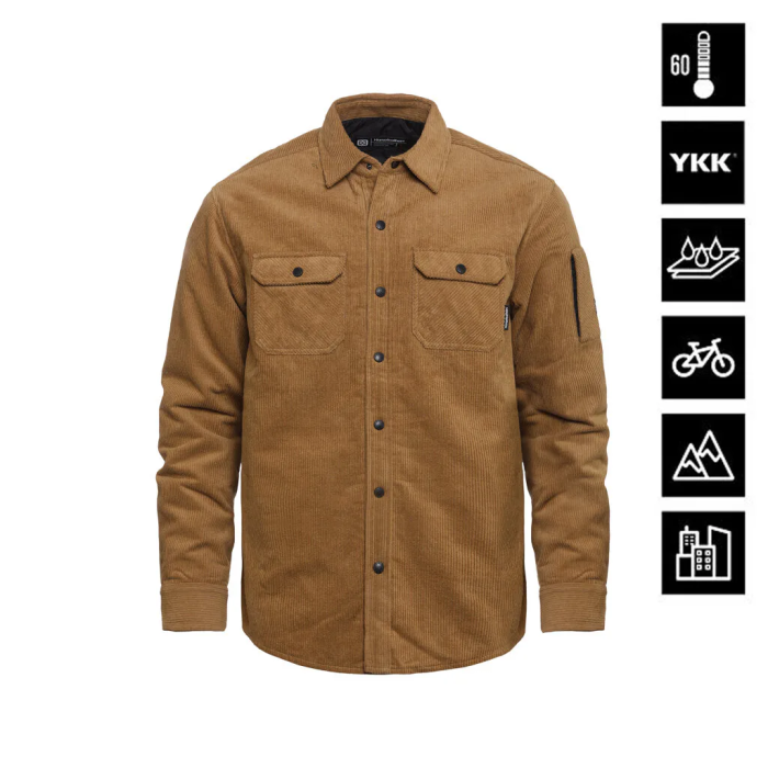 Technická košeľa so zateplením a vonkajšou vodoodpudivou povrchovou úpravou materiálu, to je hlavná charakteristika produktu Dough insulated. Okrem technických parametrov má aj skvele padnúci strih, v ktorom sa budeš cítiť pohodlne aj počas aktívneho využívania. Farbená priadza Podšívka z nylonového taftu Zapínanie na cvoky Dve náprsné vrecká so zapínaním na cvoky Vrecko na ľavom rukáve so zapínaním na zips YKK Nášivky s logom KOŠELE S AKTÍVNYM ZATEPLENÍM Typ zateplenia: PET Gramáž: taft URČENIE A STRIH KOŠEĽA Okrem strednej teplej vrstvy ju môžeš využiť aj ako vrchnú vrstvu pri rôznorodých podmienkach počasia. Strih: Regular MATERIÁL: 100% bavlna, vonkajšie PFC-free DWR úprava materiálu