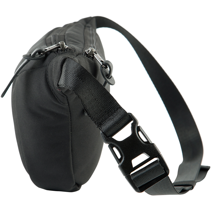 Objem 2 l, nastaviteľný popruh na nosenie okolo pása alebo cez rameno. Hlavné vrecko s horným prístupom a bezpečné vrecko na peniaze alebo pás so zipsom na vnútornej strane. Hodí sa na cesty do mesta, na fesťákov aj do prírody. Rozmery 25 x 14 x 8 cm.
