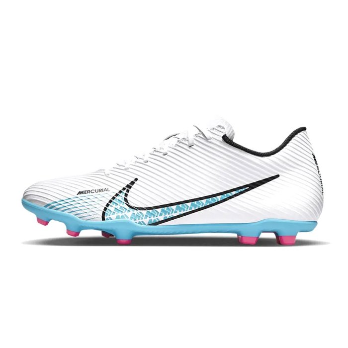 Pánske kopačky Nike Vapor 15 Club FG/Mg majú tvarovaný syntetický zvršok a na vrchu textúrovaný vzor pre lepšiu kontrolu lopty pri vysokých rýchlostiach. Rýchlostná klietka vo vnútri konštrukcie je vyrobená z tenkého, ale pevného materiálu, ktorý pripevňuje nohu k podrážke bez pridania ďalšej hmotnosti.