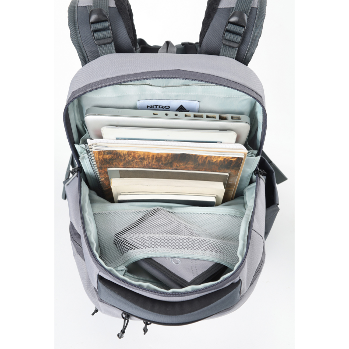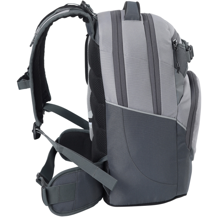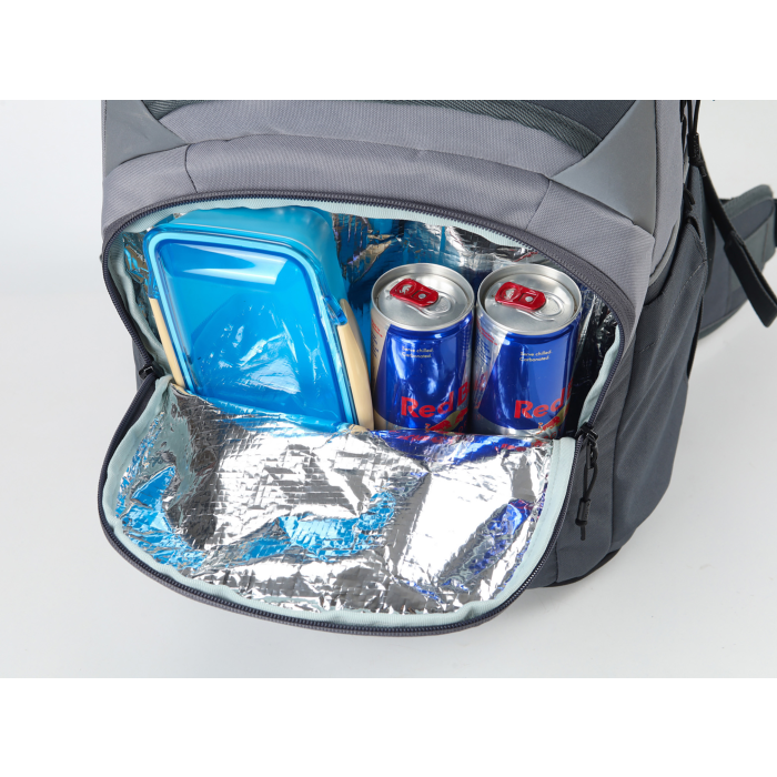 Fleecom vystlané vrecko na okuliare a podobne chúlostivé veci, dve hlavné priestranné oddelenia, z ktorých jedno obsahuje organizér na zložky a zošity, fleecové vrecko na tablet. Predné termoizolačné vrecko čo uchová studené pitie alebo desiatu pekne v chlade, postranné vrecko na fľašu, odpínací bedrový pás, ľahký a priedušný chrbtový panel "Feather comfort". Nechýbajú reflexné prvky zo všetkých strán, mäkké ucho v hornej časti a pohodlné ergonomické popruhy z mäkkej sieťoviny s nastaviteľným hrudným pásom. Objem 32 l. Rozmery 44 x 30 x 22 cm. Hmotnosť 1,1 kg.