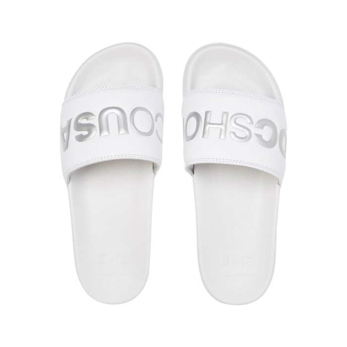 Dámske šľapky DC Slide Se sú výbornou voľbou pre vašu letnú obuv. Veľmi jednoduchý biely dizajn dotvára výrazné strieborné logo na zvršku, ktorý disponuje penovým polstrovaním pre lepšie pohodlie.