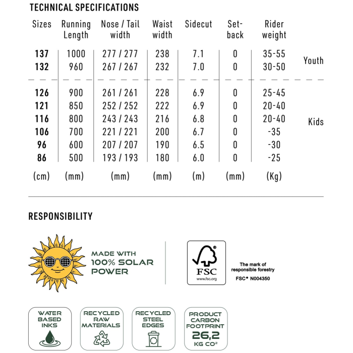 Doska, na ktorom je zábava sa učiť. Flat-Out Rocker predchádza nechcenému zahryzovaniu hrany, ľahko nadväzuje oblúky, ľahko brzdí. Vďaka tejto konštrukcii si vaše ratolesti podmania celé hory av pohode absolvujú aj prvé krôčiky, skovky a slajdíky v snowparku. Mladí dravci sa na Ripperi ľahko naučia ovládať snowboard na hrane a brzdiť aj kontrolovať rýchlosť jazdy. Veľmi skoro sa tak stanú plnoprávnymi členmi vašej jazdiacej rodiny. Presnú jazdu bez nečakaných zádrhelov a zákusov prináša Flat-Out Rocker. Pružnosť dosky - Softride Flex - je nastavená tak, aby sa prirodzene ohýbalo pod deťmi všetkých veľkostí, ktoré sa chcú celé dni baviť skotačením na snehu! Rentálová verzia má oderu odolný top sheet a odolnú sklznicu, railkiller hrany a integrovaný čiarový kód. * TVAR: TWIN * ROCKER: FLATOUT * ŠÍRKA: ŠTANDARD * YOUTH PRUŽNOSŤ: SOFTRIDE, 1/10 * VYKROJENIE: RADIAL * POWERCORE, BI-LITE LAMINÁT, ODOLNÁ RENTÁLOVÁ SKLUZNICA, ODOLNÉ RAILKILL TOPSHEET.