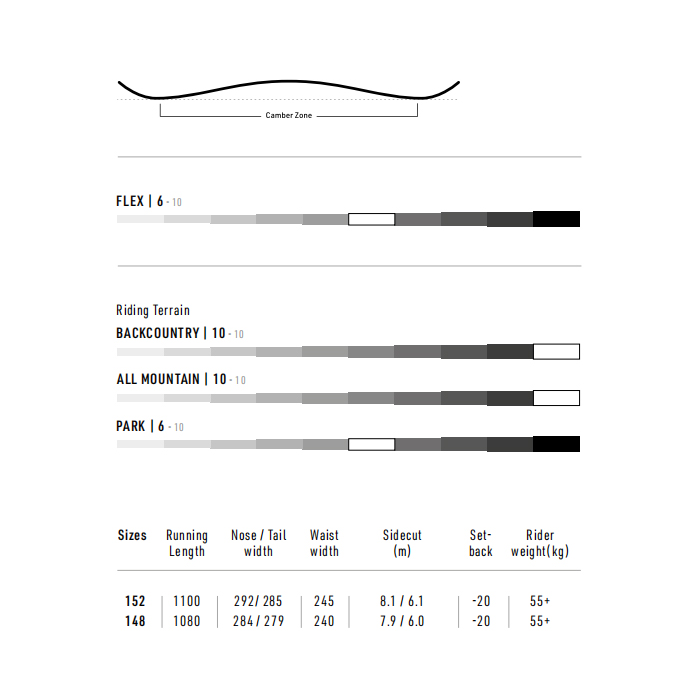 Pláva ako loď, reže oblúky ako skalpel, lieta ako Šonka a garantuje, že budete jasať pri každom zjazde. Squash všetci chcú. A nie je sa čomu diviť, jeho vlastnosti sú skvelé. Keby „sranda“ bola snowboardová kategória, ako je all-mountain alebo freestyle, tak Squash by v nej určite kraľoval. Pretože tu si kupujete skutočne kopec zábavy! Prašanové dni alebo flákanie sa na zjazdovke – Squash to všetko zvládne. Novo je lastovička pretvarovaná, aby bola tvoja jazda v hlbokom snehu plynulejšia a prechod z hrany na hranu jednoduchší. Vymakanejšia špička je dlhšia, takže sa ti fakt nepotopí, ani keď dáš omylom plnú váhu na prednú nohu as zdvihnutou lastovičkou pätkou sa zase nemusíš báť ísť na switch. Perfektný flex, vyrezanie Progressive a prehnutie Trüe Camber zariadi, že budeš môcť kárvovať, skoro ako naša Ester. Sklznica Sintered Speed Formula HD ti pomôže dostať sa z ťahanejších roviniek ako by nič. Máš rada prašan, manžester a rýchlosť kdekoľvek - Squash it! * TVAR: TAPERED SWALLOWTAIL * CAMBER: TRÜE * ŠÍRKA: MID-WIDE * PRUŽNOSŤ: ALL TERRAIN, 6/10 * VYKROJENIE: PROGRESSIVE * JADRO POWERCORE II, BI-LITE LAMINÁT, SKLUZNICE SINTERED.
