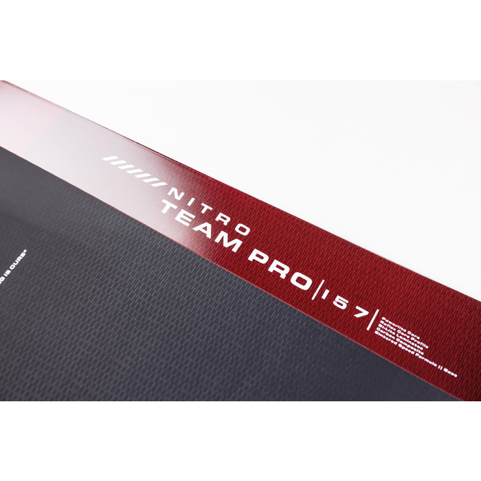 TEAM PRO je nenápadnou profi verziou Nitro bestselleru - snowboardu TEAM. Vylepšený tak, aby našim Nitro jazdcom ponúkol viac popu, nekompromisnú ovládateľnosť a bezkonkurenčnú rýchlosť. Všetko potrebné pre ich progres a skvelé výsledky, či už v súťažnej aréne alebo mimo nej. Nový snowboard Team Pro s vylepšenou špičkou a pätkou pre ladné plávanie v prachu, je tu pre jazdcov, ktorí sa chcú vždy posunúť o kúsok ďalej a na svojej technike chcú tvrdo pracovať. Osvedčený tvar Directional Twin Shape a vykrojenie Dual Degressive ponúka dokonale vyvážený mix pre perfektnú jazdu. Tuhší flex a hrany so skusom dravca ti zaručia, že budeš mať jazdu vždy pod kontrolou. Team Pro je doplnený o karbónové vlákna Diamond Bands vďaka ktorým ťa doska svojim popom vystrelí do astronomických výšin, ale zároveň ťa bude na slovo počúvať. Inovovaná sklznica Sintered Speed Formula II zaistí, že svojim kamošom prejdeš rýchlosťou blesku a Trüe Camber a jadro Reflex Core Profile ti dodá na istote aj v tých najdesivejších podmienkach a pomôže ti zdokonaľovať sa pri každej jazde. Ak chceš na svahu excelovať a nebojíš sa progresu, choď to Team Pro. Tento rok sme naše snowboardy opuncovali zeleným kolkom udržateľnosti a opatrili všetky dosky materiálmi priateľskými k našej planéte, recyklovanými hranami av celom výrobnom procese využili iba solárnu energiu. * TVAR: DIRECTIONAL TWIN * CAMBER: TRÜE * ŠÍRKA: ŠTANDARD / WIDE * PRUŽNOSŤ: ALL TERRAIN, 8/10 * VYKROJENIE: DUAL DEGRESSIVE * JADRO POWERLITE, REFLEXNÝ PROFIL JADRA, BI-LITE LAMINÁT SINTERED SPEED FORMULA II.