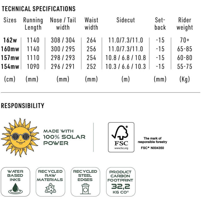 Aby si mohol jazdiť Alternatora, nemusíš byť fanúšik alternatívnej hudby ani medicíny. Stačí keď ti tep zdvihne tridsať čísel čestvého a pohľad na nedotknutú pláň mimo zjazdovku. Doska je výsledkom prosby našich jazdcov Jareda Elstona a Griffina Seiberta, ktorí chceli mať pod nohami niečo viac hravé a obratné predovšetkým do prachu, ale aj na zjazdovku, niečo, s čím si užije zábavu profík aj zelenáč. Vykĺbenejší sa Alternator ťa nadchne v hlbokom snehu, v ktorom nebudeš mať vďaka prizdvihnutej pätke problém prefrčať ani na switch. S tvarom Directional s dlhšou špičkou a Dual Degressive vykrojením s užším rádiusom medzi viazaním, ktorý sa rozvoľňuje smerom ku koncom, ťa v tieto radostné dni nič nezastaví. Starý dobrý camber a ultraľahké topoľové Powerlite jadro vystužené karbónovými vláknami sú zárukou precíznej odozvy ako v oblúku, tak v šuse, kde ťa nesklame sintrovaná Speed II slznica. Tento rok sme naše snowboardy opuncovali zeleným kolkom udržateľnosti a opatrili všetky dosky materiálmi priateľskými k našej planéte, recyklovanými hranami av celom výrobnom procese využili iba solárnu energiu. * TVAR: DIRECTIONAL * CAMBER: TRUE CAMBER * ŠÍRKA: MID-WIDE/WIDE * PRUŽNOSŤ: ALL TERRAIN, 8/10 * VYKROJENIE: DUAL DEGRESSIVE * JADRO POWERLITE, REFLEXNÝ PROFIL JADRA, BI-LITE LAMIN FORMULA.