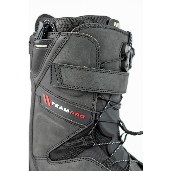 Nitro Team Pro vznikli pod taktovkou nášho severského borca Marcusa Klevelanda, ktorý od topánok vyžaduje pohodlnú tvrdosť. Oproti osvedčeným Nitro Team je tento model vybavený holenným pásikom, Power Strapom, ktorým si môžeš topánku poriadne dotiahnuť a zvýšiť tým o stupienok ich tuhosť. Ale tiež nemusíš. Team Pro sú považované za najvšestrannejšie topánky na trhu, sadnú jazdcom všetkých veľkostí i tvarov. Náš tím na nich tvrdo maká a jeho výsledky to potvrdzujú. Topánky Nitro Team Pro sú jasnou voľbou ako profíkov, tak hobby jazdcov, kvôli pohodliu, univerzálnej pružnosti a rokmi preverenému výkonu. Podrážka VIBRAM ECOSTEP pre lepšiu trakciu aj na klzkom povrchu, je extrémne odolná. Vzduchové tlmenie pod pätou šetrí vaše nohy, a tak môžete jazdiť od prvého lana až do večierka. Novo premodelovaná vnútorná topánočka Cloud 9 (tepelne tvarovateľná), chrániaca vaše nohy pred nárazmi pomocou vankúšikov z D3O®, má perfektné termoizolačné vlastnosti, 3D tvarovaný jazyk aj oblasť päty. Jej predný panel Flex Toe zaisťuje dostatok priestoru pre prsty a vylepšená Ortholite® stielka s dvojitou hustotou materiálu so zvýšenou oporou päty dodá tvojej jazde na istote a pohode, navyše je antibakteriálna a dá sa prať. ILS šnurovanie vnútornej topánky s Re/Lace zámkom sa dá kedykoľvek bez problémov dotiahnuť. Základom poriadneho snowboardingu sú ale nohy v teple. Stará sa o to okrem iného Therminator Shield, fólia, ktorá chráni chodidlo. Teplo zostáva vo vnútri a chlad nemá šancu. Team sú topánky, ktoré doviezli Eero Ettal až k statusu legendy a Marcusa Klevelanda na trón kráľa Instagramu. * VIBRAM® PODRÁŽKA VYROBENÁ Z VIBRAM® ECOSTEP™, EVA MEDZIPODAŠIEV * TLMENIE AIR DAMPENING * TERMOIZOLAČNÁ VRSTVA THERMINATOR SHIELD * SPEVNENIE CHREBA BORY ARMORED SPINE * FLEX LINK DESIG UŤAHOVANIE TLS TWIN LACING SYSTÉM, TVAROVANÉ TLS TIAHLA * BAIL OUT SYSTÉM * NOVINKA !! TEPELNE TVAROVATEĽNÁ VLOŽKA CLOUD 9 * NOVINKA !! VYLEPŠENÁ INTEGROVANÁ PODPORA KOTNÍKA * ILS UŤAHOVANIE VNÚTORNEJ BOTIČKY, RE/LACE ZÁMOK UŤAHOVANIE BOTIČKY *NOVINKA !! ORTHOLITE®HIGH CUP STIEĽKA Z MATERIÁLU DVOJ HUSTOT * TVRDOSŤ: 8-9.