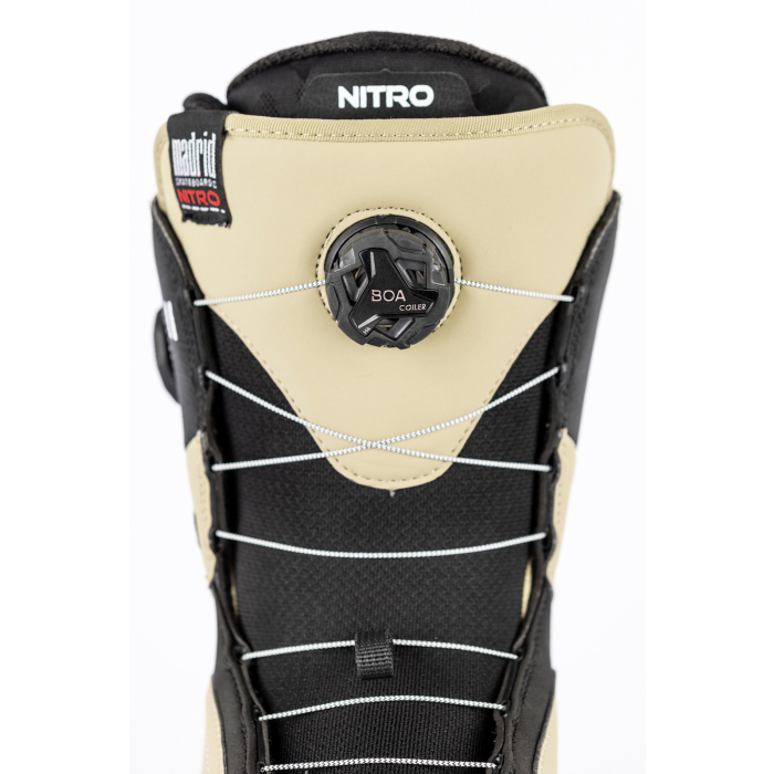 Snowboardová topánka musí spĺňať štyri základné požiadavky. Musí byť precízna, pevná, ľahká a pohodlná, presne ako Nitro Venture TLS. A navyše ešte musí dobre vyzerať. Nové Venture sú ľahké a všestranné topánky, ktoré tento rok podstúpili facelifting, aby sa mohli predstaviť v novom skate image. Vybavené sú ľahkou a odpruženou podrážkou z prírodnej gumy s tlmiacou EVA vrstvou. Tepelne tvarovateľná nová vložka Cloud 6 je mäkká a pohodlná, má 3D tvarovaný jazyk aj pätu a spoločne s pružnou kostrou bude držať tvar aj vašu nohu na mieste. Predný panel Flex Toe zaistí komfort a dostatok priestoru pre prsty. ILS šnurovanie vložky je doplnené Re/Lace uťahovaním. Stielka Ortholite poskytuje podporu, je antibakteriálna a dá sa prať. Flex link design zaisťuje lepšiu pohyblivosť v členku. Rýchly a bezproblémový nástup a výstup z topánky zaručuje dvojzonálne šnurovanie kolieskom Boa® podporené Bail Out systémom. * PODRÁŽKA Z ODOLNEJ PRÍRODNEJ GUMY * EVA MEDZIPODAŠIEV * FLEX LINK DIZAJN * 45° LACEGLIDER * UŤAHOVANIE DUAL BOA® FIT SYSTÉM, TVAROVANÉ TLS TIHLA * BAIL OUT SYSTÉM * INOVOVANÁ VNÚTORNÁ TEPLA CLOUD 6 LINER * ILS UŤAHOVANIE VNÚTORNEJ BOTIČKY, RE/LACE ZÁMOK UŤAHOVANIE BOTIČKY * STIEĽKA SOLO ORTHOLITE® * TVRDOSŤ: 7.