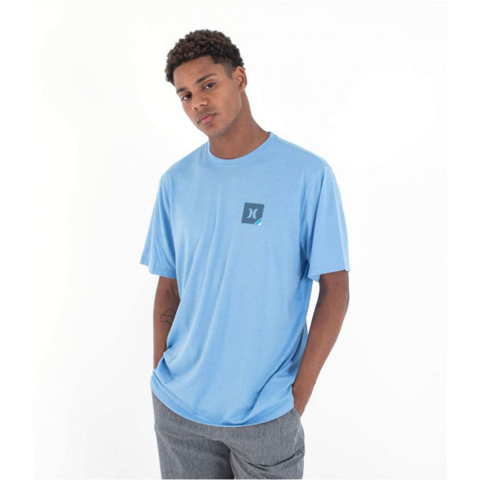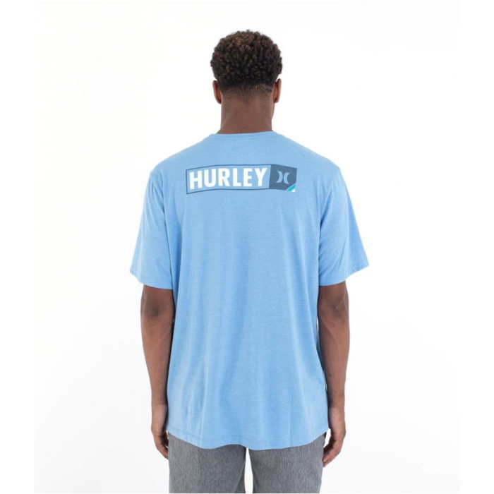 Pánske tričko Hurley Corner T-Shirt – HSP25MMTS02327-418 v kombinácii odtieňov Gym Blue a Light Photo Blue je ideálne na letné dni aj vrstvenie v prechodnom počasí. Vyrobené z kvalitnej stredne hrubej bavlny ponúka príjemný, priedušný pocit počas celého dňa, pričom dizajn s výrazným logom dodáva moderný streetwearový nádych.